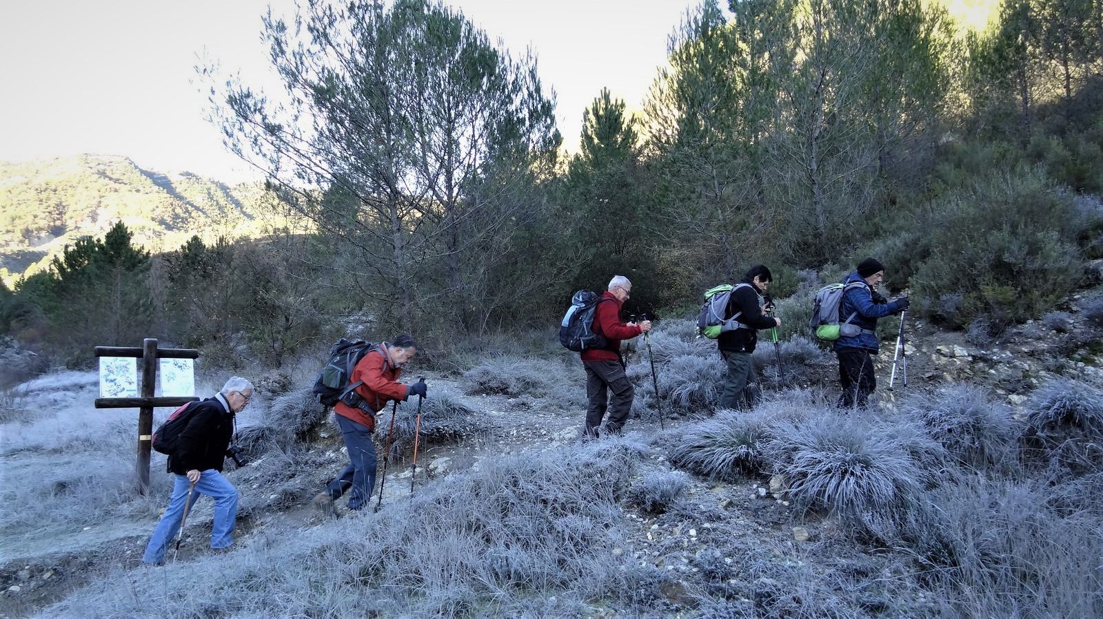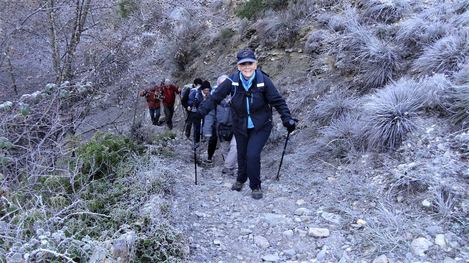 Encore un départ avec le givre sous les pieds, la fraîcheur est rendez-vous pour cette rando partant de l’Escarène, et qui nous a mené jusqu’à la Baisse de la Croix. Parcours au milieu de pins, de chênes et arbousiers dont certains se sont régalés avec les arbouses bien mûres. Parcours vallonnés sans difficulté sur pistes et chemins.