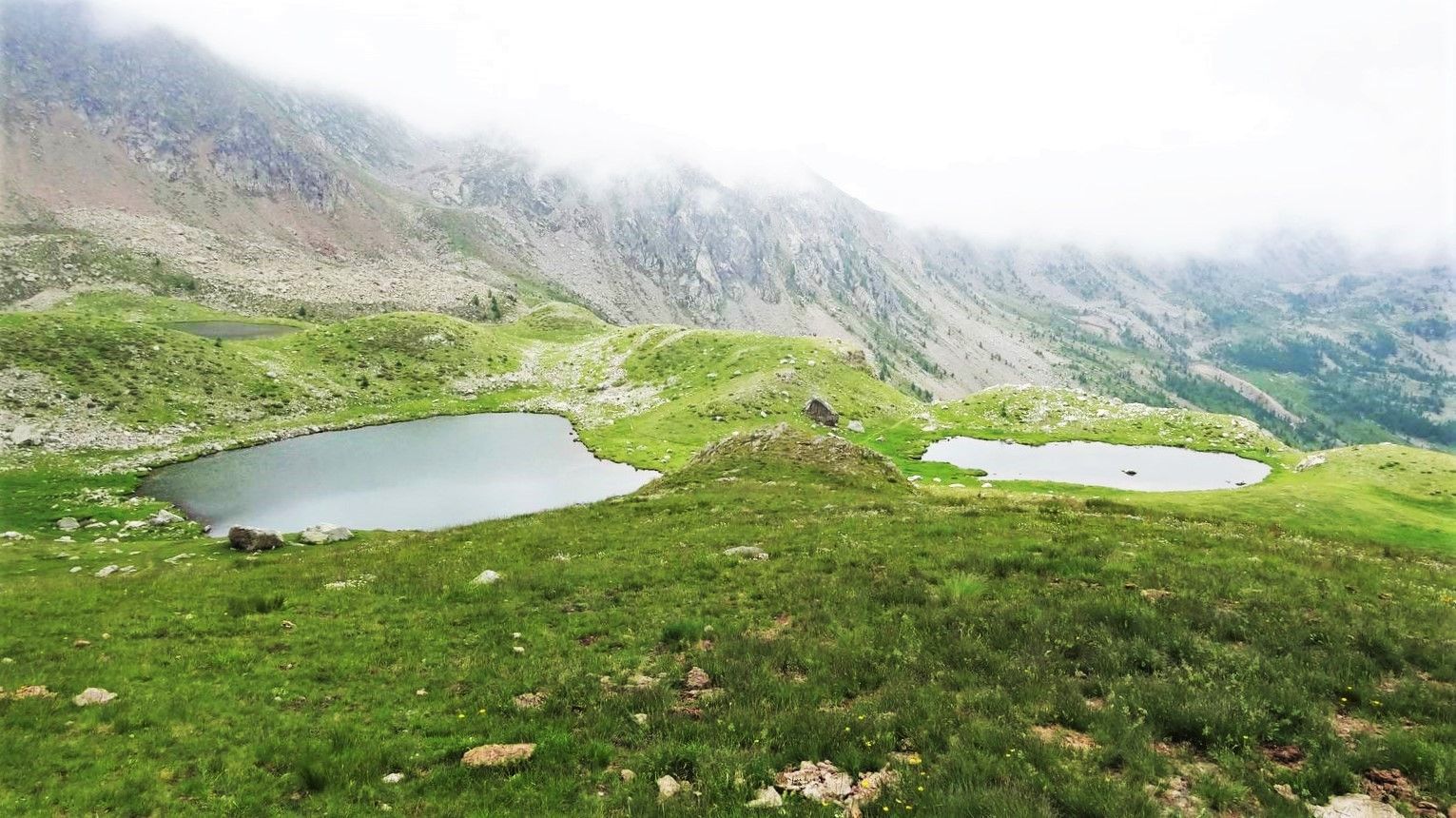Cette randonnée commence à partir de la balise 361 à la Madone de Fenestre. Le parcours s’effectue au début dans une belle forêt, nous sommes bien au frais avant d’arriver sur les alpages. Rencontre avec les animaux, vaches, chevaux, les marmottes rappellent leur présence mais restent très lointaines. La dernière montée avant les lacs est raide mais se monte quand même rapidement. L’effort est récompensé par la beauté du paysage, l’endroit est magique avec ces magnifiques lacs au nombre de 5 ; Ils sont situés sous le Mont Neiglier et la cime de Paranova. Ces lacs sont peu profonds et peuvent se prêter à la baignade. Quelques-uns d’entre nous monterons à la Baisse des 5 lacs pour encore mieux apprécier ce superbe point de vue. Le retour se fera par le chemin car les nuages deviennent menaçants sur les hauteurs. Quelques myrtilliers et framboisiers peuvent agrémentés ce parcours lorsque c’est la saison.