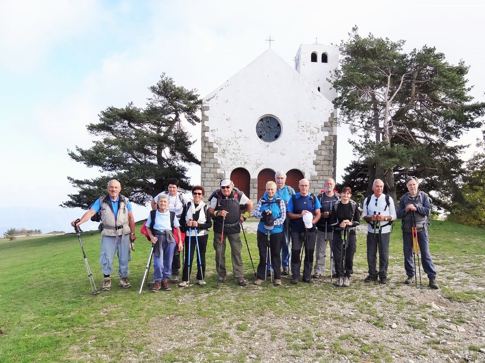 Nous nous sommes rendus à Baiardo province d'Imperia en Ligurie, village perché sur un contrefort du Monte Ceppo (1627). Parmi les nombreuse hypothèses non authentifiées de l'origine du nom nous vous en indiquons une, la provenance viendrait de Bajardo = Bayard, nom du destrier du chevalier Roland. Ce village a été le théâtre d'un violent tremblement de terre peu destructeur en 1887, mais terriblement meurtrier ou un tiers de la population périt suite à la chute de la voûte de l'église. Randonnée en forêt au milieu des pins, chênes, châtaigniers, frênes, hêtres, quelques cueillettes de châtaignes au passage (autorisé) mais pas de champignons car la collecte est très règlementée. Arrivée à notre point culminant de rando le Mont Bignone, lieu de détente privilégié des italiens de cette province, nous avons profité du beau panorama sur les montagnes Ligure et Mercantour. Site qui fut desservie par un téléphérique durant 45ans avant son arrêt en 1981, à l'époque sa construction fut une prouesse technique remarquable. La journée se termina par la visite de Baiardo et par le pot de l'amitié offert par notre président Ernest en l'honneur de son anniversaire.